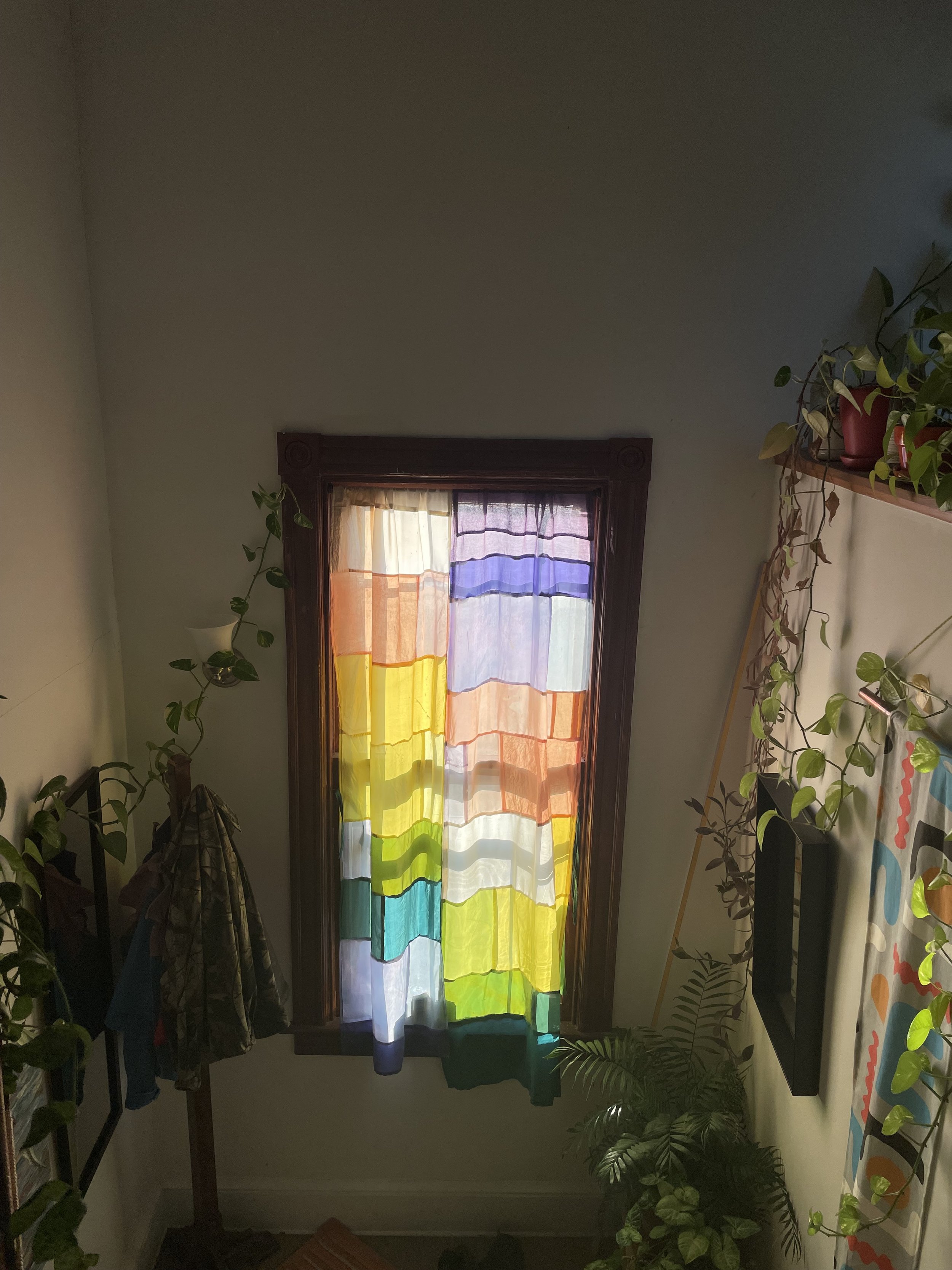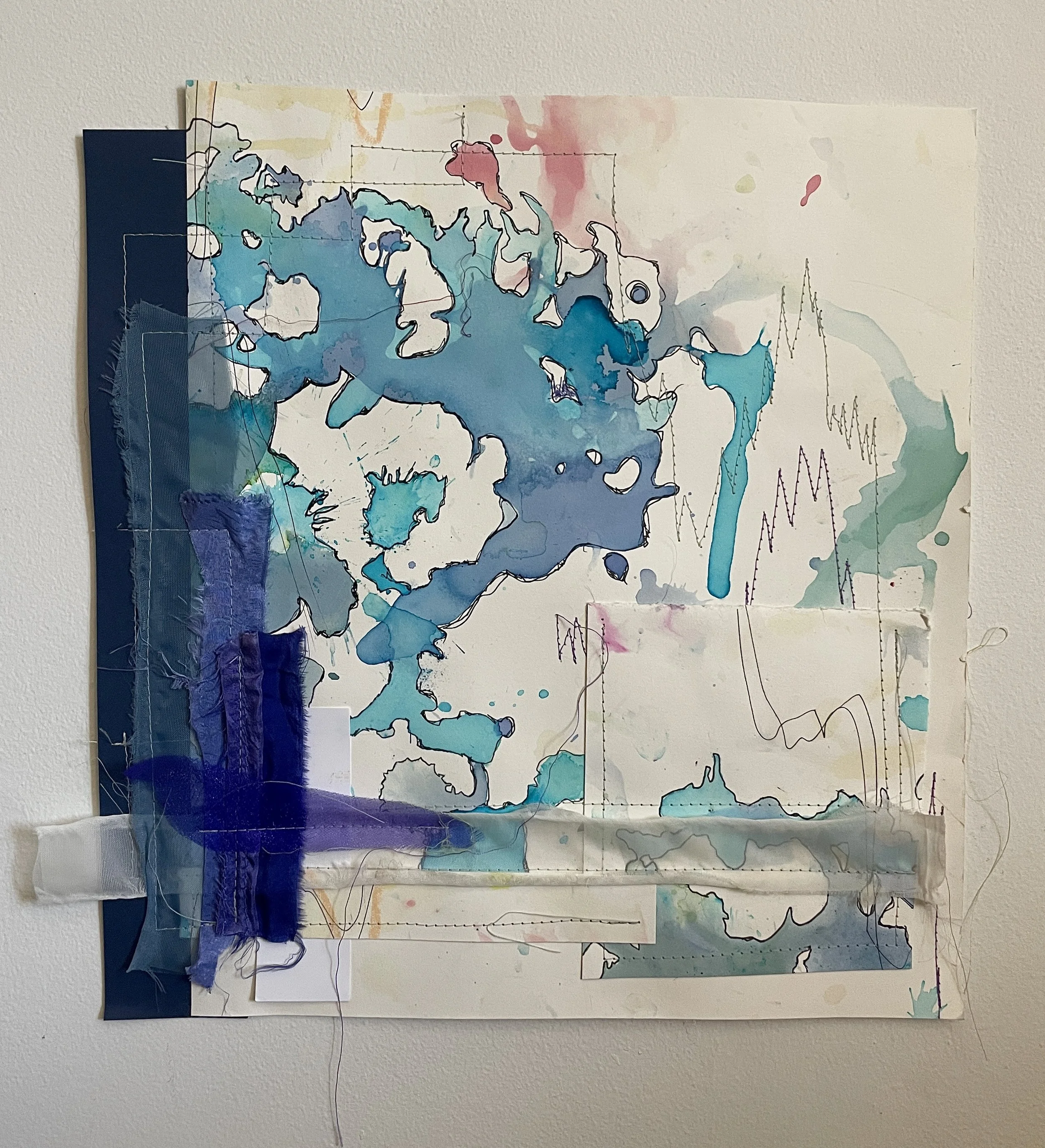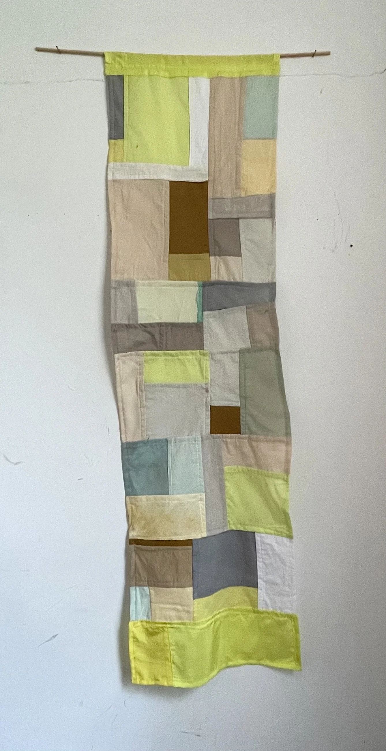 Formally abstract, I use color and texture to create multi-layered visual art that attends to the somatic experience. Working intuitively, I pull from obsessions with landscape, map-making, flags, and the exact slant of light through my apartment window.