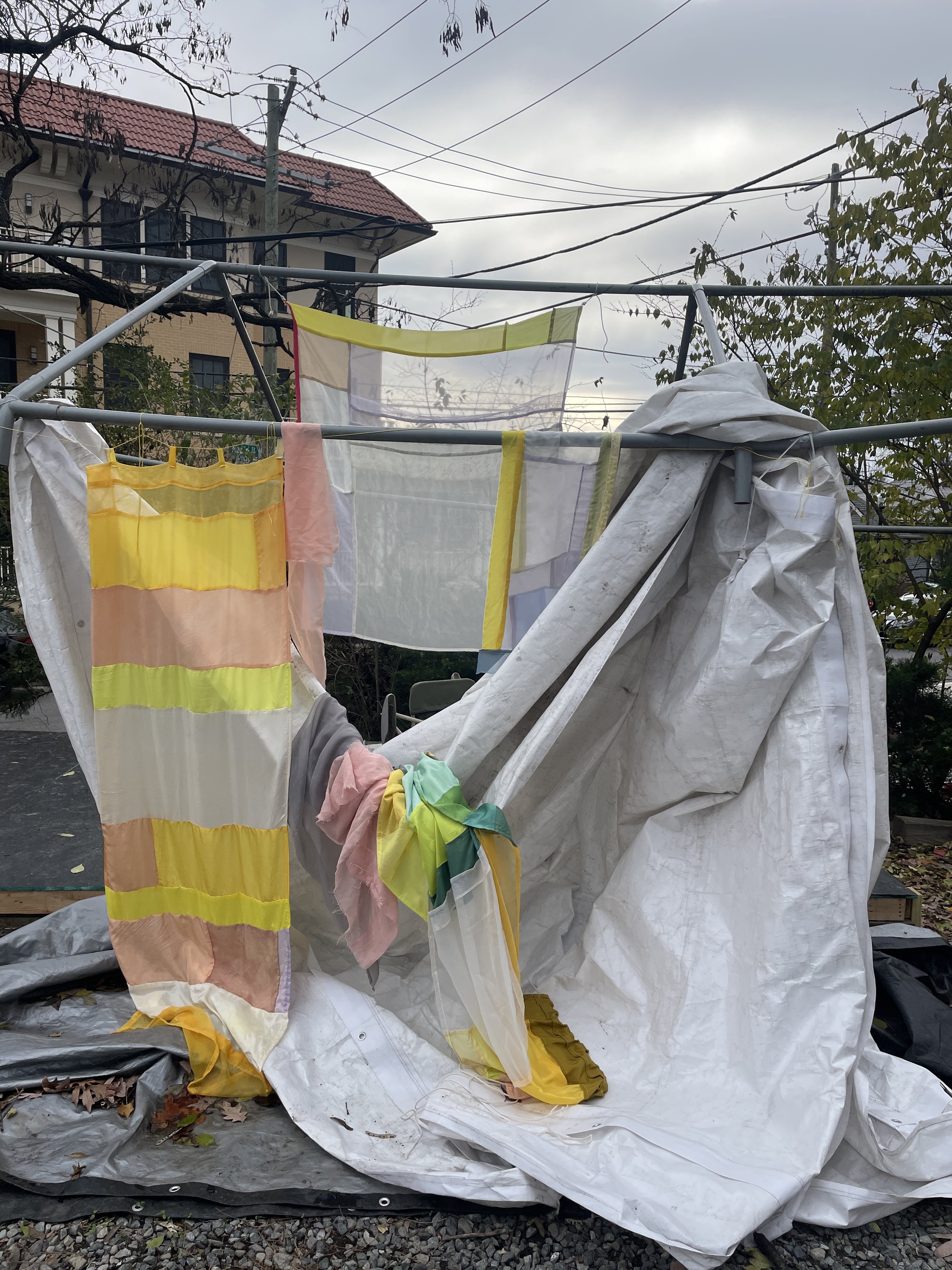 is playful, colorful, wide-ranging, and mutable. It informs my larger scale installation and performance practice as a space for investigation, experimentation, play, and re-purposing of scrap materials.
