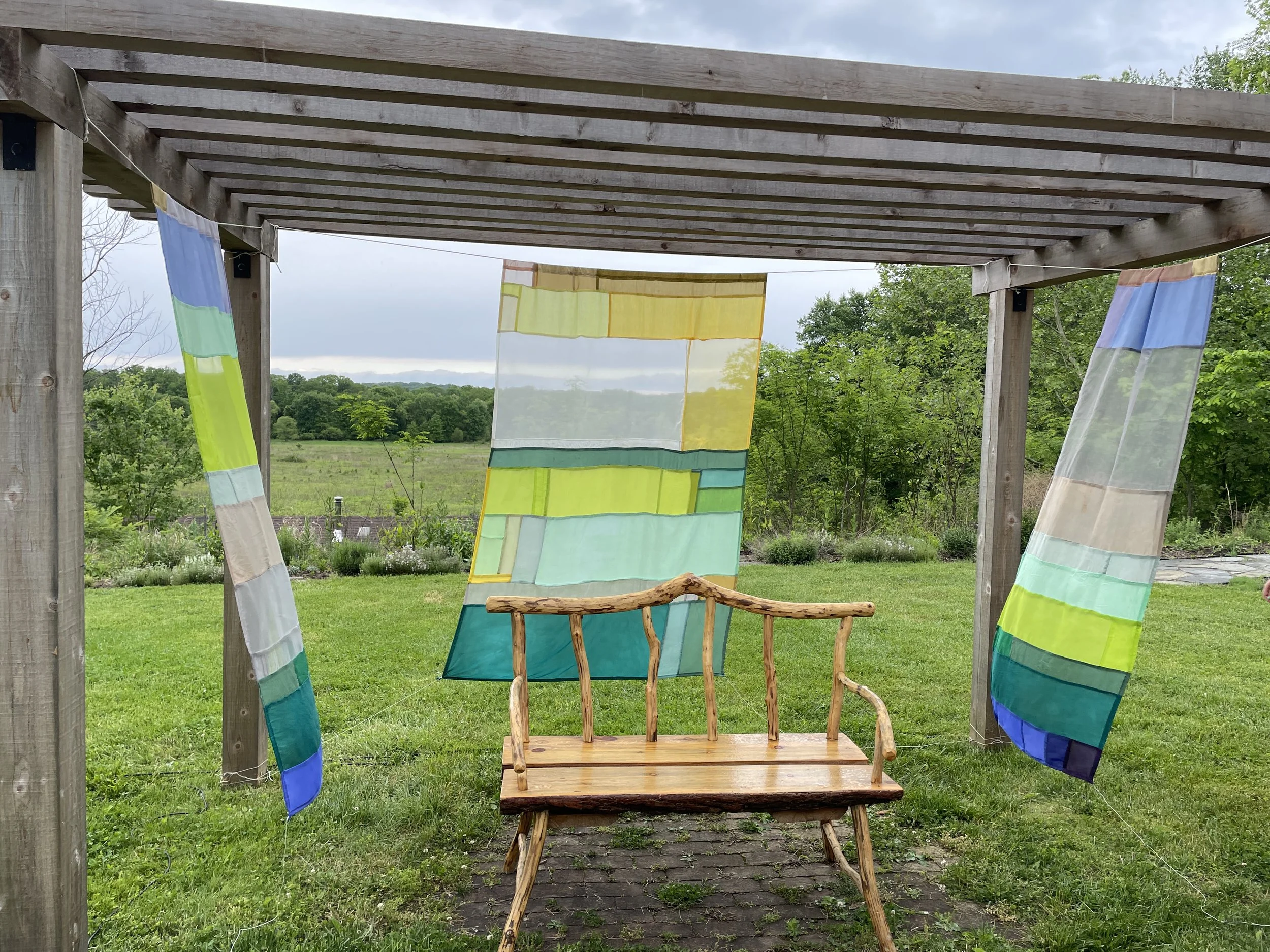 includes silk wall hangings, acrylic paintings, and sewn collage. Currently my work can be found in home, office, and restaurant settings.